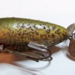 Scooter - Light hook hanger. Now the eyes have shifted. Half on the bottom and half on the top. In 1958 Smithwick started using charts in color instead of black & white. Do to cost they did not show as many lures on the one sided charts. The Scooter with the flat belly was last shown on the 1958 chart. This style is 1960 or newer..