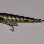 A-1000 Warhorse - The lure is stamped: Devels Warhorse. It is in color 310 White with Black Stripes. The 1" box is stamped: A 1010 Warhorse. 1956 - 1963
