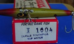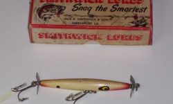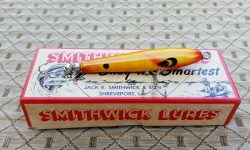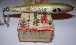 All Lures Menu A-1000 DEVELS Warhorse 1956-1962 9 images B-1000 DEVELS Warhorse 8 images Buck-N-Bawl 1948-1950 7 images Buck-N-Bawl 1953-1990’s 17 images Buck-N-Bawl Jr early 1960’s-1990’s 5 images C-1000 DEVELS Warhorse 2 images D-1000 DEVELS Warhorse 2 images DEVELS Horse -Rubber Legs -1958- 6 images DEVELS Horse Dancer-Floater 9 images DEVELS Horse Dancer-Sinker 3 images DEVELS Horse Dancer-Skinny 3 images DEVELS Horse Ma Scooter 1953-1962 22 images DEVELS Horse Pa Scooter 1953-1962 12 images DEVELS Horse Prancer 1956-1962 10 images DEVELS Horse Stud 6 images DEVELS Horse Weedless 1958-1962 9 images DEVELS Toothpick - I-1000 3 images Devils Series and other Wood Lures 59 images F-100 DEVELS Horse 1952-1962 40 images F-1000 DEVELS Warhorse 7 images F-200 DEVELS Horse 1951-1962 18 images Gandy Dancer 1949-1953 27 images Hornet 1948-1950 2 images Horse Fly 7 images Jack Sprat 1951-1958 9 images King Snipe 1949-1990 26 images L-100 DEVELS Horse 1958- ? 2 images My Pet 1951-1953 3 images New Version-1970’s and 1980’s 1 image Non-Charted Colors 40 images Old Version 1953-1962 14 images Old Version-diver ? 4 images Other Collections 51 images Other Early Metal ? 5 images Plastic, Metal, and Other Lures 40 images Ponytail, Horseshoe-1961 3 images Rooter - F-100 Blank 7 images Rooter - F-200 Blank (C-1500) 7 images Rooter - F-700 Dancer Blank (S-400) 7 images Rooters 1956 - 1962 Family 1 image S-100 DEVELS Horse- – Sinker 1951-1962 22 images S-400 (B-400) Razorback Rooter 7 images S-700 (A-400) Snake Head 7 images Smithwick Special 1951-1953 1 image Snapper 1948-1950 5 images Stud Duck 29 images T-N-B Jack_Sprat 1948-1950 7 images T-N-B The Lure 1947-1949 39 images Tootsie Bug 1951-1953 13 images Twister 1948-1950 6 images Uncatalogued 58 images Walking Scorpion 1949-1961 7 images Wanderer 1948-1950 4 images Warhorse-1950’s 3 images Well Digger 1948-1950 1 image