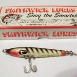A-1000 Warhorse - The lure is stamped: Devels Warhorse. It is in color 310 White with Black Stripes. The 1" box is stamped: A 1010 Warhorse. 1956 - 1963