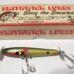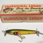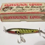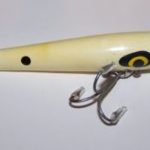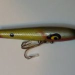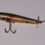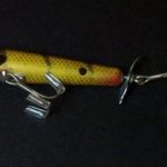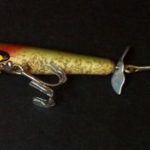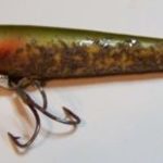 The wood body is 3" long and it has pointed spinners front and rear. It also has two hooks. Color: #9 Perch 1956 - 1963