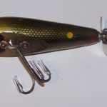 Buck & Bawl - Color: #14 Green Striper. This one has the eyes fully on the flat bottom of the lures. From observation it would appear that the post 1965 lures have the eyes half on the bottom and half on the sides.