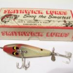 Buck & Bawl - Here is a nice combo that looks like it just rolled off the assembly line. It is one of the older Buck & Bawl lures with the eyes fully on the bottom. The comes in the correct 2 piece cardboard box.