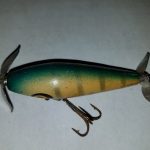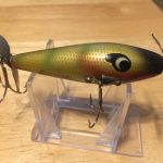 Smithwick advertised the King Snipe in 1949.. This lure was probable from the very first year’s production run. This lure is in the color Silver Flash with the mustard eye. I have only seen a couple of Snipes with the mustard eye. I don’t think the mustard eye was used beyond 1950-1951.