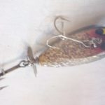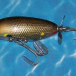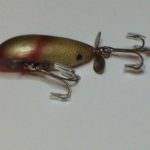 Scooter - Light hook hanger. Now the eyes have shifted. Half on the bottom and half on the top. In 1958 Smithwick started using charts in color instead of black & white. Do to cost they did not show as many lures on the one sided charts. The Scooter with the flat belly was last shown on the 1958 chart. This style is 1960 or newer..